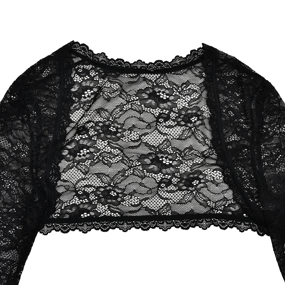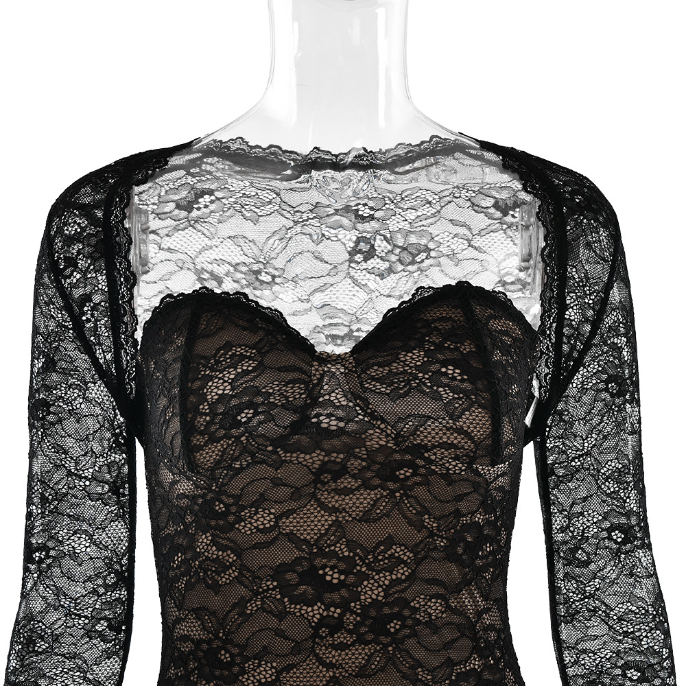 Color: Black, knitted lining made of lace fabric, double layer dress design, note: two-piece suit, including shawl long sleeve top